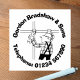 Rubber stamp for scaffolders or a scaffolding business. Fun image of a man working on constructing scaffolding. Scaffolder cartoon with wording you can personalise with the name of your business, plus contact number. Stamp your company details on paperwork or publicity material. Scaffolder rubber stamp.