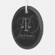 Professional ornament with scales of justice symbol and your text on black background. Customize it.