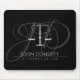 Professional mousepad with scales of justice symbol and your text on a dark brown background. Customize it.