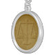 Necklace with scales of justice design.