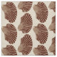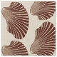 Fabric in a block print pattern, based on a scallop shell, in dark chocolate brown on a beige background