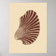 Print in a block print pattern, based on a scallop shell, in dark chocolate brown on a beige background