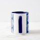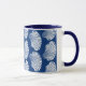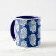 Mug in a block print pattern, based on a scallop shell, in white on a cobalt / navy blue background
