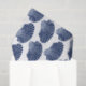 Tissue paper in a block print pattern, based on a scallop shell, in dark navy / indigo blue on a white background