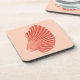 Scallop Shell Block Print, Light Coral Orange Beverage Coaster