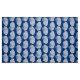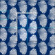 Fabric in a block print pattern, based on a scallop shell, in white on a navy blue / indigo background