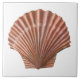 Ceramic Tile, Coaster or Trivet featuring hand painted scallop shell. Artwork: Oil Pastel on Paper. Copyright Dominic A. White.