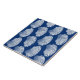 Ceramic tile in a block print pattern, based on a scallop shell, in white on a navy blue / indigo background
