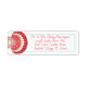 Return address labels with scallop shell vintage art image and red printed text. White labels are bordered by a thin, blue line. Name and address is printed with modern, hand-written font and will fit up to four lines of text.
