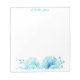 A line drawing of scallop shells and flowers in aqua and blue is featured on this beach-themed notepad. Perfect for anyone who loves the beach, the ocean, and nature.