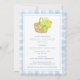 Scalloped Blue Gingham Hydrangea Flower Basket Invitation