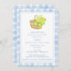 Scalloped Blue Gingham Hydrangea Flower Basket Invitation