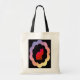 This design was made using Photoshop. The backround is a black frame with a cutout that shows a rainbow of colors. A black circle with a scalloped edge shows a cat designed with a red tint. This tote can be used for so many different activities. Available in assorted color handles.