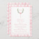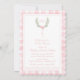 Scalloped Pink Gingham Laurel Crest Monogram Invitation