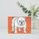 Fun loving bulldog on a vibrant red and orange background. Playful and happy for the dog lover in anyone's life!
