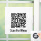 A placeholder image for your QR code is above a line of black display text. (Shown: Scan For Menu) You can edit the text to show your company name or a custom message. Remember to enter your website URL for the QR code to work correctly.
