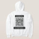This men's hoodie has a design that showcases the words "Scan Me For Repentance" in a Moonshine print font displaying white letters with black background displaying a typograph style with a qr code linking to "Acts 3:19-20" KJV bible scripture in the center of this faith based quote theme. This hoodie is incredibly soft and relaxed spun from a plush poly-cotton blend great for everyday wear has a large matching image on the back.