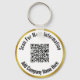 You can replace the display image with the file for your QR code. There are two lines of black display text that you can edit to show a custom message. These elegant keychains have black text in a white circle. The faux (not foil) gold border is an artistic rendering.