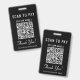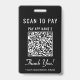 Get paid anywhere you do business with this clean, professional black and white Scan to Pay 2 Payment QR Codes Badge. This lightweight badge lets customers send payment instantly with a quick scan -- perfect for mobile service, busy events, and on-the-go checkout. The minimalist layout features a bold scan to pay call-to-action, clearly centered QR codes on each side, and a friendly “Thank You” message that reinforces trust and professionalism. Upload your QR codes, and add your payment app names and your business name for a polished, branded look. Ideal for vendors, artists, bartenders, hair stylists, makeup artists, delivery drivers, market sellers, and event staff, this wearable payment badge keeps checkout fast, contactless, and convenient -- no counter space needed.