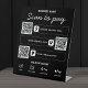 Attract more customers with this sleek, professional Scan to Pay sign! Clearly displays QR codes for Cash App, Venmo, and PayPal, plus icons for credit cards, Google Pay, and Apple Pay. This convenient tabletop stand ensures easy and contactless payment for your business. Modern design, high-quality print. Perfect for retail shops, restaurants, pop-up events, farmers' markets, and more!