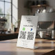 But that's not all. Alongside these, social media icons for Instagram, Facebook, and TikTok are elegantly displayed, ready to be personalized with your username. Beneath these icons, there’s space for your personalized information, whether it's your website, contact number, or a catchy tagline that resonates with your brand's ethos. This pedestal sign does more than streamline payments; it's a nexus between your physical storefront and digital presence, a conversation starter, and a silent ambassador promoting your brand at every interaction.