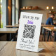Simple modern table top pedestal sign for your business with a Zelle QR code for customers to scan for payments. Add your QR code, business name, phone number and street address in simple typography.