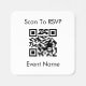 You can enter your website URL to create a custom QR code. There are two lines of black display text that you can edit to show a custom message. (Shown Line 1: Scan to RSVP Shown Line 2: Event Name). The sticker is black and white.