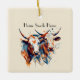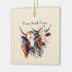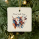 Make your holiday decor stand out with this bold and unique ceramic ornament. Our "Scandi Farmhouse Cattle" design adds a touch of rustic charm and modern artistry to any tree. The eye-catching geometric cows are a quirky detail that sets this ornament apart, making it a memorable piece of holiday decor or a thoughtful gift. The smooth, glossy ceramic finish brings out the vibrant colors of the design. You can personalize it with a family name, a year, or a phrase like "The Ranch," "Farm Sweet Farm," or "First Christmas."
