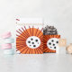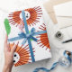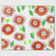 This wrapping paper has a Scandinavian design of minimalist flowers in retro shades of orange and maroon. Bright, colorful, and festive.