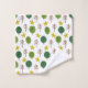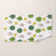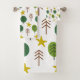 This towel set has a Scandinavian repeating design of a forest in brown and shades of green and yellow stars.