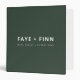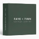 Simple, stylish custom wedding memories binder in a modern minimalist scandi scandinavian design style with a contemporary typography in white on a moss forest green background in an informal casual style. The text can easily be personalized for a unique one of a kind wedding design for your special day.
