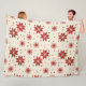 A minimalist Scandinavian Christmas pattern with red geometric snowflakes and starbursts on a soft cream background. Inspired by traditional Nordic textiles, it brings a festive yet modern warmth perfect for winter décor and holiday designs.