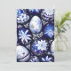 Decorative Easter eggs with elegant floral motifs in rich blue and white tones.
