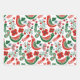 Scandinavian Christmas Pattern w Flowers and Birds Wrapping Paper Sheets