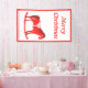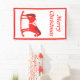 This awesome Christmas banner features a digital art image of a cute Scandinavian style rocking horse. The horse is red with a dark red mane, tail and hooves. The friendly horse is smiling. It has a white saddle and reins with pretty red Scandi folk style patterns on the saddle including the sun, moon and stars and hearts and flowers. The base of the rocking horse is red and is covered in pretty white leaves. The design was inspired by the Swedish Dala horse. There is custom text so you can personalize this design with your own message.