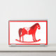 This awesome Christmas laptop skin features a digital art image of a cute Scandinavian style rocking horse. The horse is red with a dark red mane, tail and hooves. The friendly horse is smiling. It has a white saddle and reins with pretty red Scandi folk style patterns on the saddle including the sun, moon and stars and hearts and flowers. The base of the rocking horse is red and is covered in pretty white leaves. The design was inspired by the Swedish Dala horse.