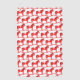 This awesome Christmas golf towel features a digital art image of a cute Scandinavian style rocking horse. The horse is red with a dark red mane, tail and hooves. The friendly horse is smiling. It has a white saddle and reins with pretty red Scandi folk style patterns on the saddle including the sun, moon and stars and hearts and flowers. The base of the rocking horse is red and is covered in pretty white leaves. The design was inspired by the Swedish Dala horse.