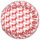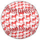 This awesome patterned Christmas softball features a digital art image of a cute Scandinavian style rocking horse. The horse is red with a dark red mane, tail and hooves. The friendly horse is smiling. It has a white saddle and reins with pretty red Scandi folk style patterns on the saddle including the sun, moon and stars and hearts and flowers. The base of the rocking horse is red and is covered in pretty white leaves. The design was inspired by the Swedish Dala horse.