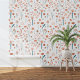 Folk style floral pattern with Scandinavian blush pink and sea foam flowers on a white background. Original art by Nic Squirrell.