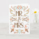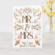 This wedding congratulations card features the text "Mr. & Mrs." printed on the front in brown lettering surrounded by Scandinavian folk art illustrations. This card can be customized with your own greeting on the inside.