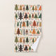 Folk art quilt illustration with Christmas trees, shapes in bold colors. Scandinavian style