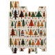 Folk art quilt illustration with Christmas trees, shapes in bold colors. Scandinavian style