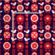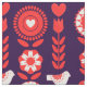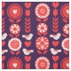 Stylish design inspired by Scandinavian folk art with pretty flowers, birds and hearts in red navy blue and white.
