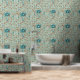 A Scandi inspired woodland pattern with forest creatures and a cuckoo clock on a sage green background. Original art by Nic Squirrell.