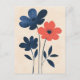 Cobalt petals and coral stems contrast against a warm cream background, blending graphic strength with floral simplicity.