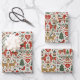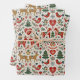 Scandinavian Red and Green Folk Christmas Pattern Wrapping Paper Sheets