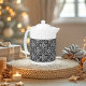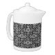Beautiful teapot for the Winter features a festive Scandinavian / Norwegian Selburose Christmas variation knit pattern in black and white