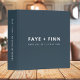 Simple, stylish custom wedding memories binder in a modern minimalist scandi scandinavian design style with a contemporary typography in white on a dusky smoke blue background in an informal casual style. The text can easily be personalized for a unique one of a kind wedding design for your special day.