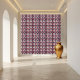 This Scandinavian-inspired tile pattern features a repeating motif of stylized snowflakes in red, white, and blue. The design evokes a sense of Nordic tradition and winter charm, making it suitable for various applications, including home decor, textiles, and crafts. The bold color palette and geometric shapes create a visually striking pattern that adds a touch of Scandinavian flair to any project.