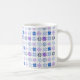 This mug has a winter design of different snowflakes in blues and purples in rows.